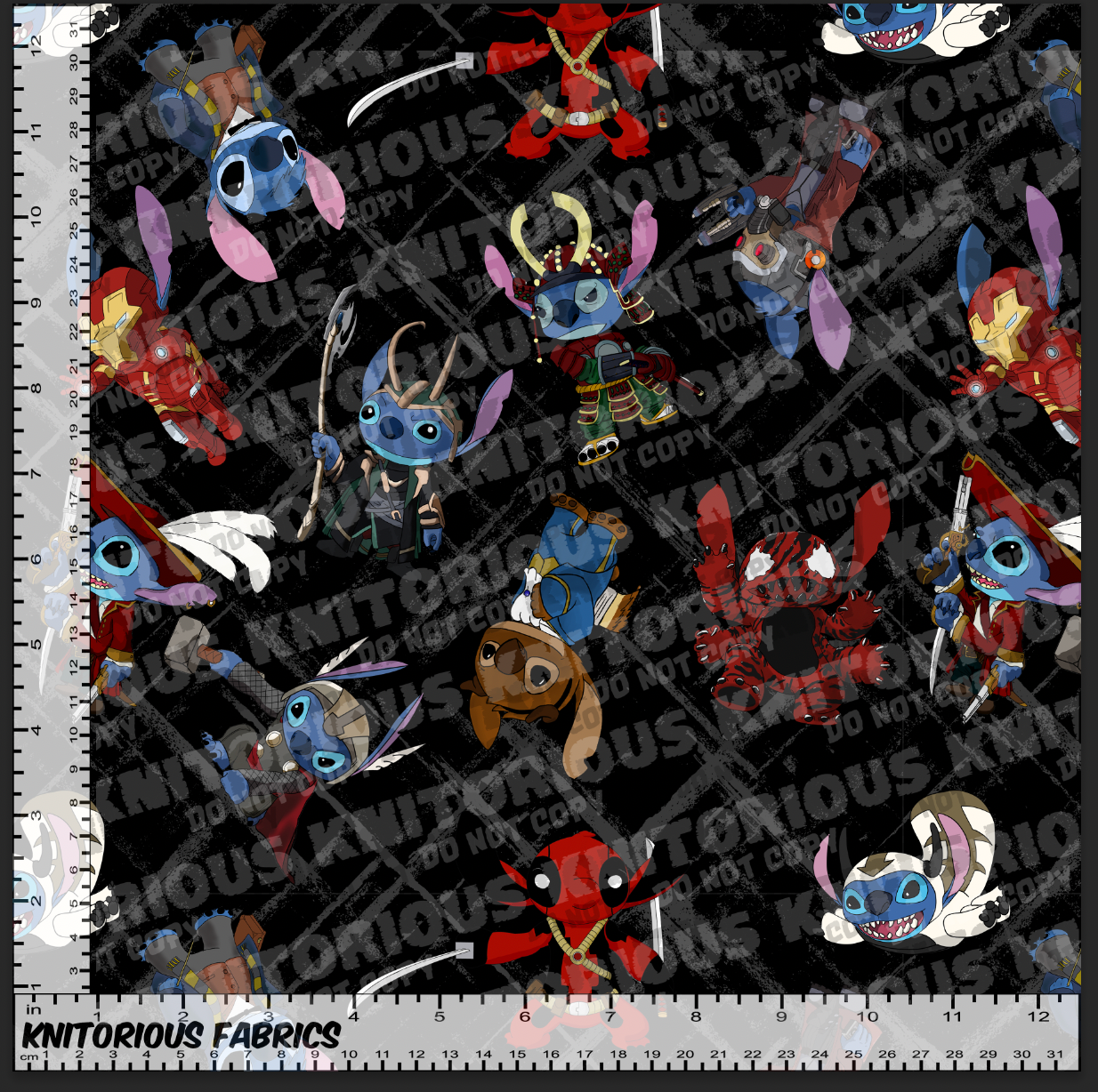 QTY of 1 = 1 yard PRE-ORDERS CAN TAKE 10-16 weeks to ship out. RETAIL CAN TAKE 14-16 BUSINESS days to ship out. For retail sometimes fabric might not be continuous. Could be 1,2,3,4, etc yard cuts. No refunds will be given until after those time frames for the length of time for delivery. It is your responsibility to check the wall and doc in the files section with updates in the Facebook group to see statuses of orders. Individual messages/emails and the like posted on the wall will not be answered continuously and you will only be referred to check yourself. To stay up to date on the status of your order please join the group for daily updates: https://www.facebook.com/groups/KNIToriousFabric/ It is recommended for best results your fabric be washed with synthrapol and color catchers. Follow washing instructions in 'terms' or in Facebook group doc under the files section or in the pinned post. Washing instructions will also be enclosed in your package on the back of the business card. Buyer negligence to not follow these instructions is not the seller's responsibility. Fabric will be printed on 58" wide fabric, but please be aware imperfections are common along the sides of the selvage when doing small/custom orders and cutting off of selvage - this can result in a final width of 54-58" useable fabric. Minor flaws such as a 1/2 inch - 2 inch difference or close to it in alignment during printing can also occur due to the nature of printing on stretch fabric, which can appear as a slight 'curve' to the printing of images on the fabric. Do not order if this will bother you. Things such as a slight heathering/grainy look can occur on lighter colors (gray, light blue, etc). Once again, do not order if this will bother you. It is also possible to have a few tiny white specks here and there where lint comes off the fabric that had the ink on it. Minor flaws like this will not be discounted or refunded. PLEASE NOTE: Different fabric types will vary in color slightly due to being printed on different fabrics. Do not expect your minky to perfectly match your cotton lycra, etc. Shades can vary in bulk with colors by 10% from what you see on the digital image/strike off. Discounts will only be given if it is greater than 10%. If it comes with a drastically different color, all members will be notified before it is shipped to them. If there are any flaws that are not considered minor, they will be disclosed before shipping to you. Please note I send any disclosures by email OR by a post on the Facebook group wall. If you do not reply within 72hrs your fabric will be shipped and I will not refund it once it is shipped, you will have to sell it in a destash or b/s/t. There is no gaurantee - and most likely different batches of fabric will match previous runs of the same print. Colors vary from batch to batch. Please also be aware when ordering no orders will be refunded or discounted if you have a single flaw on it that is smaller than/can be covered by a quarter per yard, this includes any type of flaw (including even a very small hole). If you cannot work around your flaw - do please pm me and I am more than happy to work something out with you. By ordering from this you acknowledge you have agreed to the rules in the FB group KNITorious Fabrics and still agree to them. These rules are also in the TOS you agree to upon checkout. All packages include $100 in insurance (unless international, which includes $200) through USPS.There is shipping insurance that can be purchased along with your order on this site which will cover it through USPS. If you did not ask for your total cost of your package to be insured then I will insure the rest through a 3rd party. By purchasing through KNITorious you agree the seller is not responsible for any lost, damaged, or stolen packages. If any of these occur it is the buyer's responsibility to follow the proper steps through USPS to file a claim. Anything over $100/$200 will also require a secondary insurance claim with a second party if USPS insurance was not paid for. PHOTO OF COMPLETED CLOTHING ITEMS FOR EXAMPLE ONLY