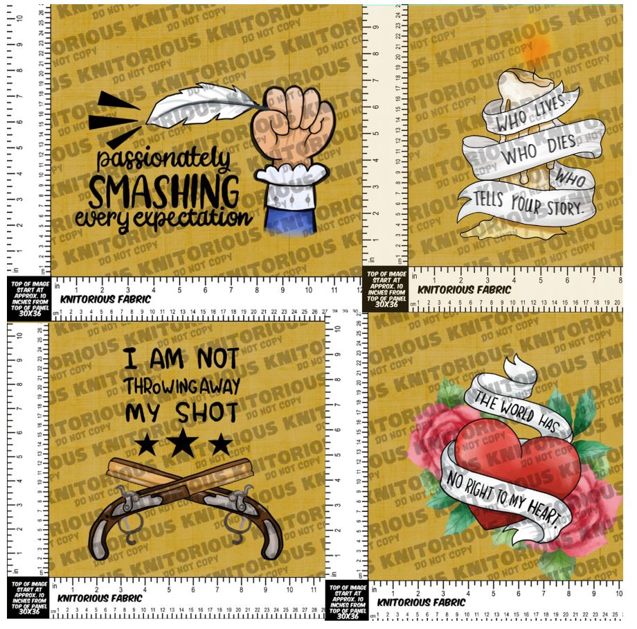QTY of 1 = 1 yard PRE-ORDERS CAN TAKE 10-16 weeks to ship out. RETAIL CAN TAKE 14-16 BUSINESS days to ship out. For retail sometimes fabric might not be continuous. Could be 1,2,3,4, etc yard cuts. No refunds will be given until after those time frames for the length of time for delivery. It is your responsibility to check the wall and doc in the files section with updates in the Facebook group to see statuses of orders. Individual messages/emails and the like posted on the wall will not be answered continuously and you will only be referred to check yourself. To stay up to date on the status of your order please join the group for daily updates: https://www.facebook.com/groups/KNIToriousFabric/ It is recommended for best results your fabric be washed with synthrapol and color catchers. Follow washing instructions in 'terms' or in Facebook group doc under the files section or in the pinned post. Washing instructions will also be enclosed in your package on the back of the business card. Buyer negligence to not follow these instructions is not the seller's responsibility. Fabric will be printed on 58" wide fabric, but please be aware imperfections are common along the sides of the selvage when doing small/custom orders and cutting off of selvage - this can result in a final width of 54-58" useable fabric. Minor flaws such as a 1/2 inch - 2 inch difference or close to it in alignment during printing can also occur due to the nature of printing on stretch fabric, which can appear as a slight 'curve' to the printing of images on the fabric. Do not order if this will bother you. Things such as a slight heathering/grainy look can occur on lighter colors (gray, light blue, etc). Once again, do not order if this will bother you. It is also possible to have a few tiny white specks here and there where lint comes off the fabric that had the ink on it. Minor flaws like this will not be discounted or refunded. PLEASE NOTE: Different fabric types will vary in color slightly due to being printed on different fabrics. Do not expect your minky to perfectly match your cotton lycra, etc. Shades can vary in bulk with colors by 10% from what you see on the digital image/strike off. Discounts will only be given if it is greater than 10%. If it comes with a drastically different color, all members will be notified before it is shipped to them. If there are any flaws that are not considered minor, they will be disclosed before shipping to you. Please note I send any disclosures by email OR by a post on the Facebook group wall. If you do not reply within 72hrs your fabric will be shipped and I will not refund it once it is shipped, you will have to sell it in a destash or b/s/t. There is no gaurantee - and most likely different batches of fabric will match previous runs of the same print. Colors vary from batch to batch. Please also be aware when ordering no orders will be refunded or discounted if you have a single flaw on it that is smaller than/can be covered by a quarter per yard, this includes any type of flaw (including even a very small hole). If you cannot work around your flaw - do please pm me and I am more than happy to work something out with you. By ordering from this you acknowledge you have agreed to the rules in the FB group KNITorious Fabrics and still agree to them. These rules are also in the TOS you agree to upon checkout. All packages include $100 in insurance (unless international, which includes $200) through USPS.There is shipping insurance that can be purchased along with your order on this site which will cover it through USPS. If you did not ask for your total cost of your package to be insured then I will insure the rest through a 3rd party. By purchasing through KNITorious you agree the seller is not responsible for any lost, damaged, or stolen packages. If any of these occur it is the buyer's responsibility to follow the proper steps through USPS to file a claim. Anything over $100/$200 will also require a secondary insurance claim with a second party if USPS insurance was not paid for. PHOTO OF COMPLETED CLOTHING ITEMS FOR EXAMPLE ONLY