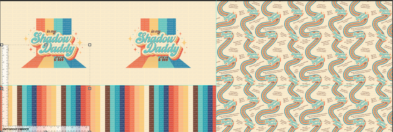 QTY of 1 = 1 yard or 1 panel For retail sometimes fabric might not be continuous. Could be 1,2,3,4, etc yard cuts. All sales are final for pre-orders once the round closes. No refunds will be given unless the round goes over the 16 week max turnaround time. It is your responsibility to check the FB wall or blog for round updates. Individual messages/emails and the like posted on the wall will not be answered continuously and you will only be referred to check yourself. Please follow washing instructions in 'terms' or in Facebook group doc under the files section or in the pinned post. Please also follow and special washing, drying, and use guidelines based on fabric types especially for delicate fabrics. Buyer negligence to not follow these instructions is not the seller's responsibility. Fabrics will be printed full width by fabric type, but please be aware imperfections are common along the sides of the selvage when doing small/custom orders and cutting off of selvage - this can result in a final width of 2-4" less useable fabric. Minor flaws such as a 1/2 inch - 2 inch difference or close to it in alignment during printing can also occur due to the nature of printing on stretch fabric, which can appear as a slight 'curve' to the printing of images on the fabric. Things such as a slight heathering/grainy look can occur on lighter colors (gray, light blue, etc). It is also possible to have a few tiny white specks here and there where lint comes off the fabric that had the ink on it. Minor flaws like this will not be discounted or refunded as this is the natural of digital printing. I do strive to bring only the very best quality though! Waterproof canvas has a very rough texture as stated in other areas, printing does not appear as 'crisp' and can also hinder some of the finer details and lines especially on dark background PLEASE NOTE: Different fabric types will vary in color slightly due to being printed on different contents. Do not expect your minky to perfectly match your cotton lycra, etc. Shades can vary in bulk with colors by 10% from what you see on the digital image/strike off also due to screen vs in hand. Discounts will only be given if it is greater than 10%. If it comes with a drastically different color, all members will be notified before it is shipped to them. If there are any flaws that are not considered minor, they will be disclosed before shipping to you. Please note I send any disclosures by email OR by a post on the Facebook group wall. If you do not reply within 72hrs your fabric will be shipped. Colors vary from batch to batch. Please also be aware when ordering no orders will be refunded or discounted if you have a single flaw on it that is smaller than/can be covered by a quarter per yard, this includes any type of flaw (including even a very small hole). If you cannot work around your flaw - do please pm me and I am more than happy to work something out with you. Satisfaction is always #1 to me! INSURANCE: USPS Priority/Flat Rate options include $100 insurance. UPS/Fedex/DHL options include $0 Insurance. It is the buyer's responsibility to choose route insurance at checkout. By purchasing through KNITorious you agree the seller is not responsible for any lost, damaged, or stolen packages. Once I ship items my commitment to get you the item has been fulfilled. Route is great, affordable, and handles claims with the buyer directly and fast! PHOTO OF COMPLETED CLOTHING ITEMS FOR EXAMPLE ONLY