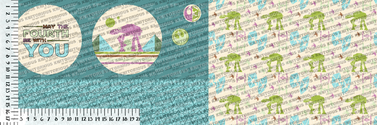 QTY of 1 = 1 yard or 1 panel For retail sometimes fabric might not be continuous. Could be 1,2,3,4, etc yard cuts. All sales are final for pre-orders once the round closes. No refunds will be given unless the round goes over the 16 week max turnaround time. It is your responsibility to check the FB wall or blog for round updates. Individual messages/emails and the like posted on the wall will not be answered continuously and you will only be referred to check yourself. Please follow washing instructions in 'terms' or in Facebook group doc under the files section or in the pinned post. Please also follow and special washing, drying, and use guidelines based on fabric types especially for delicate fabrics. Buyer negligence to not follow these instructions is not the seller's responsibility. Fabrics will be printed full width by fabric type, but please be aware imperfections are common along the sides of the selvage when doing small/custom orders and cutting off of selvage - this can result in a final width of 2-4" less useable fabric. Minor flaws such as a 1/2 inch - 2 inch difference or close to it in alignment during printing can also occur due to the nature of printing on stretch fabric, which can appear as a slight 'curve' to the printing of images on the fabric. Things such as a slight heathering/grainy look can occur on lighter colors (gray, light blue, etc). It is also possible to have a few tiny white specks here and there where lint comes off the fabric that had the ink on it. Minor flaws like this will not be discounted or refunded as this is the natural of digital printing. I do strive to bring only the very best quality though! Waterproof canvas has a very rough texture as stated in other areas, printing does not appear as 'crisp' and can also hinder some of the finer details and lines especially on dark background PLEASE NOTE: Different fabric types will vary in color slightly due to being printed on different contents. Do not expect your minky to perfectly match your cotton lycra, etc. Shades can vary in bulk with colors by 10% from what you see on the digital image/strike off also due to screen vs in hand. Discounts will only be given if it is greater than 10%. If it comes with a drastically different color, all members will be notified before it is shipped to them. If there are any flaws that are not considered minor, they will be disclosed before shipping to you. Please note I send any disclosures by email OR by a post on the Facebook group wall. If you do not reply within 72hrs your fabric will be shipped. Colors vary from batch to batch. Please also be aware when ordering no orders will be refunded or discounted if you have a single flaw on it that is smaller than/can be covered by a quarter per yard, this includes any type of flaw (including even a very small hole). If you cannot work around your flaw - do please pm me and I am more than happy to work something out with you. Satisfaction is always #1 to me! INSURANCE: USPS Priority/Flat Rate options include $100 insurance. UPS/Fedex/DHL options include $0 Insurance. It is the buyer's responsibility to choose route insurance at checkout. By purchasing through KNITorious you agree the seller is not responsible for any lost, damaged, or stolen packages. Once I ship items my commitment to get you the item has been fulfilled. Route is great, affordable, and handles claims with the buyer directly and fast! PHOTO OF COMPLETED CLOTHING ITEMS FOR EXAMPLE ONLY