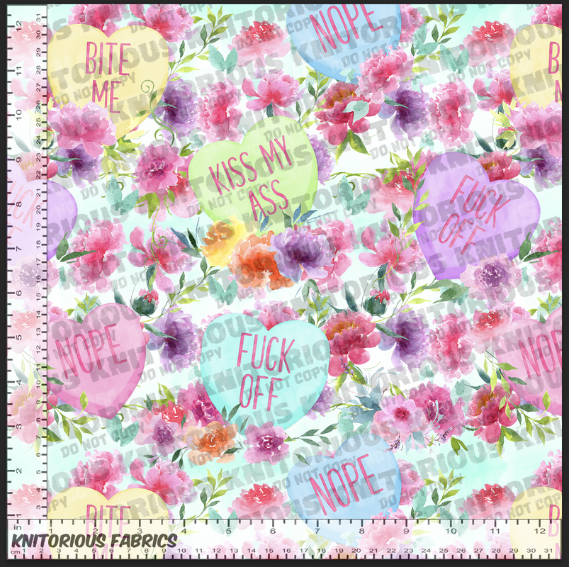 QTY of 1 = 1 yard PRE-ORDERS CAN TAKE 10-16 weeks to ship out. RETAIL CAN TAKE 14-16 BUSINESS days to ship out. For retail sometimes fabric might not be continuous. Could be 1,2,3,4, etc yard cuts. No refunds will be given until after those time frames for the length of time for delivery. It is your responsibility to check the wall and doc in the files section with updates in the Facebook group to see statuses of orders. Individual messages/emails and the like posted on the wall will not be answered continuously and you will only be referred to check yourself. To stay up to date on the status of your order please join the group for daily updates: https://www.facebook.com/groups/KNIToriousFabric/ It is recommended for best results your fabric be washed with synthrapol and color catchers. Follow washing instructions in 'terms' or in Facebook group doc under the files section or in the pinned post. Washing instructions will also be enclosed in your package on the back of the business card. Buyer negligence to not follow these instructions is not the seller's responsibility. Fabric will be printed on 58" wide fabric, but please be aware imperfections are common along the sides of the selvage when doing small/custom orders and cutting off of selvage - this can result in a final width of 54-58" useable fabric. Minor flaws such as a 1/2 inch - 2 inch difference or close to it in alignment during printing can also occur due to the nature of printing on stretch fabric, which can appear as a slight 'curve' to the printing of images on the fabric. Do not order if this will bother you. Things such as a slight heathering/grainy look can occur on lighter colors (gray, light blue, etc). Once again, do not order if this will bother you. It is also possible to have a few tiny white specks here and there where lint comes off the fabric that had the ink on it. Minor flaws like this will not be discounted or refunded. PLEASE NOTE: Different fabric types will vary in color slightly due to being printed on different fabrics. Do not expect your minky to perfectly match your cotton lycra, etc. Shades can vary in bulk with colors by 10% from what you see on the digital image/strike off. Discounts will only be given if it is greater than 10%. If it comes with a drastically different color, all members will be notified before it is shipped to them. If there are any flaws that are not considered minor, they will be disclosed before shipping to you. Please note I send any disclosures by email OR by a post on the Facebook group wall. If you do not reply within 72hrs your fabric will be shipped and I will not refund it once it is shipped, you will have to sell it in a destash or b/s/t. There is no gaurantee - and most likely different batches of fabric will match previous runs of the same print. Colors vary from batch to batch. Please also be aware when ordering no orders will be refunded or discounted if you have a single flaw on it that is smaller than/can be covered by a quarter per yard, this includes any type of flaw (including even a very small hole). If you cannot work around your flaw - do please pm me and I am more than happy to work something out with you. By ordering from this you acknowledge you have agreed to the rules in the FB group KNITorious Fabrics and still agree to them. These rules are also in the TOS you agree to upon checkout. All packages include $100 in insurance (unless international, which includes $200) through USPS.There is shipping insurance that can be purchased along with your order on this site which will cover it through USPS. If you did not ask for your total cost of your package to be insured then I will insure the rest through a 3rd party. By purchasing through KNITorious you agree the seller is not responsible for any lost, damaged, or stolen packages. If any of these occur it is the buyer's responsibility to follow the proper steps through USPS to file a claim. Anything over $100/$200 will also require a secondary insurance claim with a second party if USPS insurance was not paid for. PHOTO OF COMPLETED CLOTHING ITEMS FOR EXAMPLE ONLY