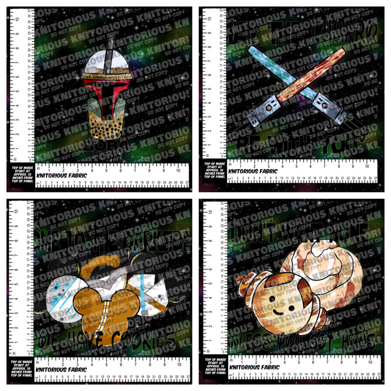 QTY of 1 = 1 yard PRE-ORDERS CAN TAKE 10-16 weeks to ship out. RETAIL CAN TAKE 14-16 BUSINESS days to ship out. For retail sometimes fabric might not be continuous. Could be 1,2,3,4, etc yard cuts. No refunds will be given until after those time frames for the length of time for delivery. It is your responsibility to check the wall and doc in the files section with updates in the Facebook group to see statuses of orders. Individual messages/emails and the like posted on the wall will not be answered continuously and you will only be referred to check yourself. To stay up to date on the status of your order please join the group for daily updates: https://www.facebook.com/groups/KNIToriousFabric/ It is recommended for best results your fabric be washed with synthrapol and color catchers. Follow washing instructions in 'terms' or in Facebook group doc under the files section or in the pinned post. Washing instructions will also be enclosed in your package on the back of the business card. Buyer negligence to not follow these instructions is not the seller's responsibility. Fabric will be printed on 58" wide fabric, but please be aware imperfections are common along the sides of the selvage when doing small/custom orders and cutting off of selvage - this can result in a final width of 54-58" useable fabric. Minor flaws such as a 1/2 inch - 2 inch difference or close to it in alignment during printing can also occur due to the nature of printing on stretch fabric, which can appear as a slight 'curve' to the printing of images on the fabric. Do not order if this will bother you. Things such as a slight heathering/grainy look can occur on lighter colors (gray, light blue, etc). Once again, do not order if this will bother you. It is also possible to have a few tiny white specks here and there where lint comes off the fabric that had the ink on it. Minor flaws like this will not be discounted or refunded. PLEASE NOTE: Different fabric types will vary in color slightly due to being printed on different fabrics. Do not expect your minky to perfectly match your cotton lycra, etc. Shades can vary in bulk with colors by 10% from what you see on the digital image/strike off. Discounts will only be given if it is greater than 10%. If it comes with a drastically different color, all members will be notified before it is shipped to them. If there are any flaws that are not considered minor, they will be disclosed before shipping to you. Please note I send any disclosures by email OR by a post on the Facebook group wall. If you do not reply within 72hrs your fabric will be shipped and I will not refund it once it is shipped, you will have to sell it in a destash or b/s/t. There is no gaurantee - and most likely different batches of fabric will match previous runs of the same print. Colors vary from batch to batch. Please also be aware when ordering no orders will be refunded or discounted if you have a single flaw on it that is smaller than/can be covered by a quarter per yard, this includes any type of flaw (including even a very small hole). If you cannot work around your flaw - do please pm me and I am more than happy to work something out with you. By ordering from this you acknowledge you have agreed to the rules in the FB group KNITorious Fabrics and still agree to them. These rules are also in the TOS you agree to upon checkout. All packages include $100 in insurance (unless international, which includes $200) through USPS.There is shipping insurance that can be purchased along with your order on this site which will cover it through USPS. If you did not ask for your total cost of your package to be insured then I will insure the rest through a 3rd party. By purchasing through KNITorious you agree the seller is not responsible for any lost, damaged, or stolen packages. If any of these occur it is the buyer's responsibility to follow the proper steps through USPS to file a claim. Anything over $100/$200 will also require a secondary insurance claim with a second party if USPS insurance was not paid for. PHOTO OF COMPLETED CLOTHING ITEMS FOR EXAMPLE ONLY