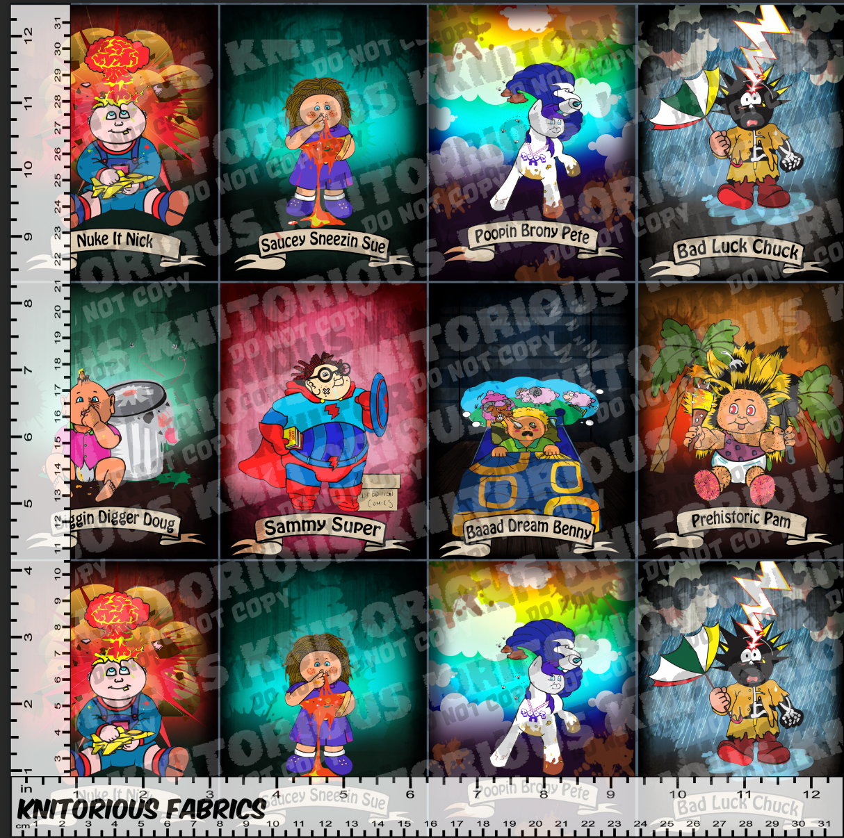 QTY of 1 = 1 yard or 1 panel For retail sometimes fabric might not be continuous. Could be 1,2,3,4, etc yard cuts. All sales are final for pre-orders once the round closes. No refunds will be given unless the round goes over the 16 week max turnaround time. It is your responsibility to check the FB wall or blog for round updates. Individual messages/emails and the like posted on the wall will not be answered continuously and you will only be referred to check yourself. Please follow washing instructions in 'terms' or in Facebook group doc under the files section or in the pinned post. Please also follow and special washing, drying, and use guidelines based on fabric types especially for delicate fabrics. Buyer negligence to not follow these instructions is not the seller's responsibility. Fabrics will be printed full width by fabric type, but please be aware imperfections are common along the sides of the selvage when doing small/custom orders and cutting off of selvage - this can result in a final width of 2-4" less useable fabric. Minor flaws such as a 1/2 inch - 2 inch difference or close to it in alignment during printing can also occur due to the nature of printing on stretch fabric, which can appear as a slight 'curve' to the printing of images on the fabric. Things such as a slight heathering/grainy look can occur on lighter colors (gray, light blue, etc). It is also possible to have a few tiny white specks here and there where lint comes off the fabric that had the ink on it. Minor flaws like this will not be discounted or refunded as this is the natural of digital printing. I do strive to bring only the very best quality though! Waterproof canvas has a very rough texture as stated in other areas, printing does not appear as 'crisp' and can also hinder some of the finer details and lines especially on dark background PLEASE NOTE: Different fabric types will vary in color slightly due to being printed on different contents. Do not expect your minky to perfectly match your cotton lycra, etc. Shades can vary in bulk with colors by 10% from what you see on the digital image/strike off also due to screen vs in hand. Discounts will only be given if it is greater than 10%. If it comes with a drastically different color, all members will be notified before it is shipped to them. If there are any flaws that are not considered minor, they will be disclosed before shipping to you. Please note I send any disclosures by email OR by a post on the Facebook group wall. If you do not reply within 72hrs your fabric will be shipped. Colors vary from batch to batch. Please also be aware when ordering no orders will be refunded or discounted if you have a single flaw on it that is smaller than/can be covered by a quarter per yard, this includes any type of flaw (including even a very small hole). If you cannot work around your flaw - do please pm me and I am more than happy to work something out with you. Satisfaction is always #1 to me! INSURANCE: USPS Priority/Flat Rate options include $100 insurance. UPS/Fedex/DHL options include $0 Insurance. It is the buyer's responsibility to choose route insurance at checkout. By purchasing through KNITorious you agree the seller is not responsible for any lost, damaged, or stolen packages. Once I ship items my commitment to get you the item has been fulfilled. Route is great, affordable, and handles claims with the buyer directly and fast! PHOTO OF COMPLETED CLOTHING ITEMS FOR EXAMPLE ONLY