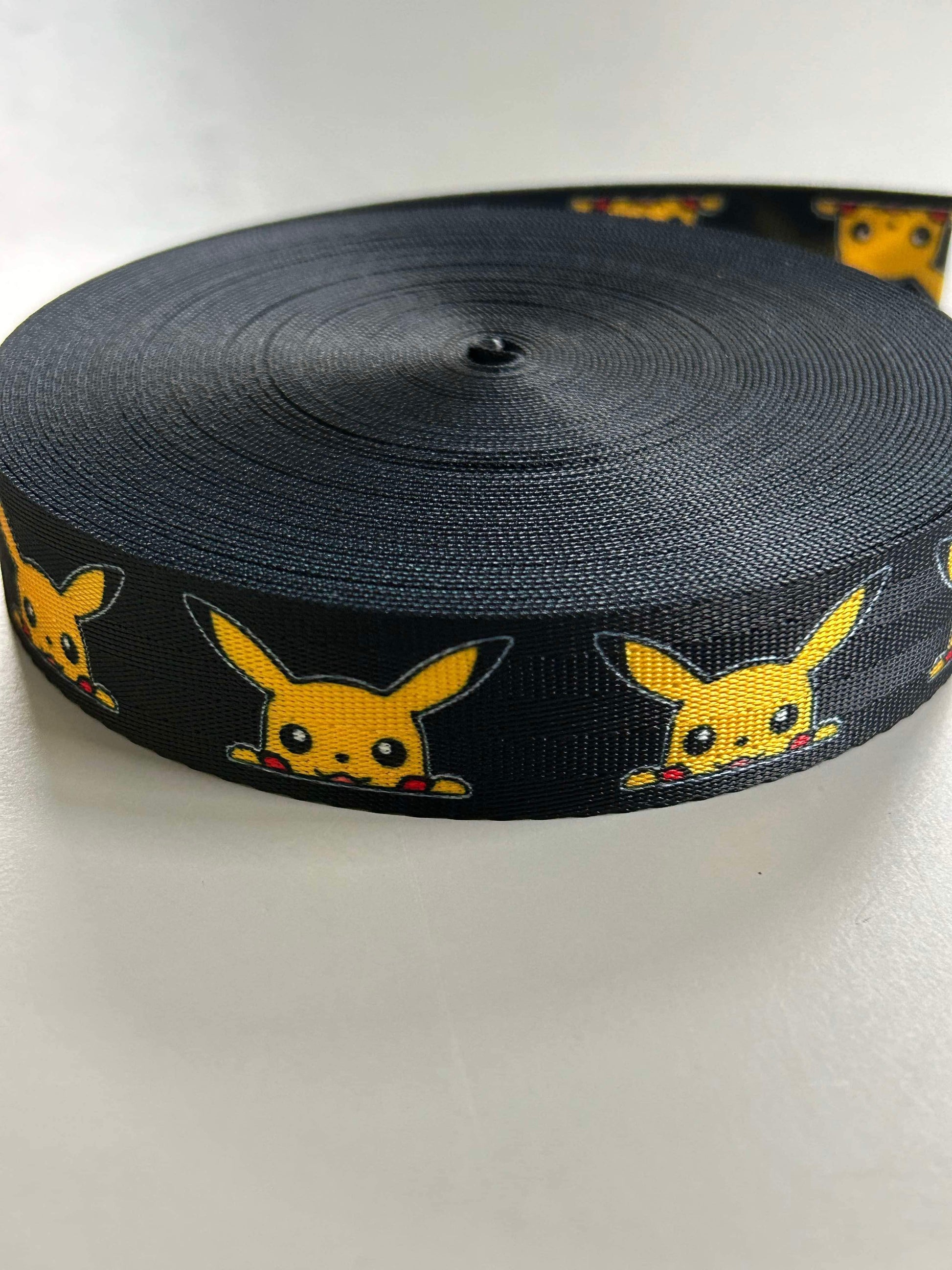 Printed 1” seatbelt webbing. Comes in 3, 5, and 10 yard cuts. All attempts will be made to have continuous cuts