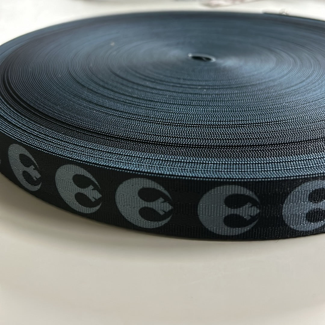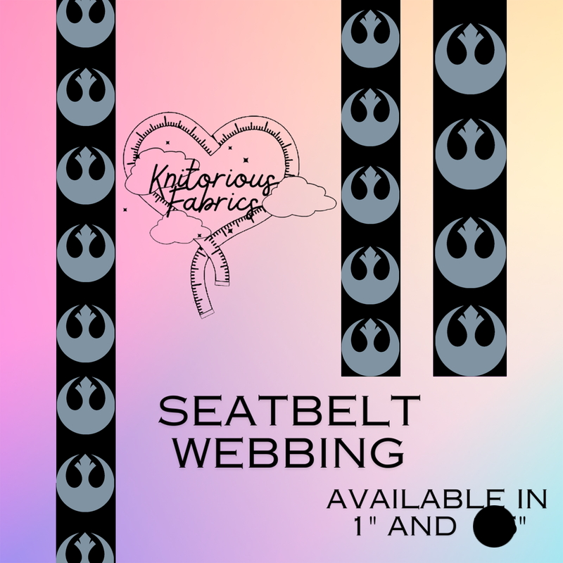 Printed 1” seatbelt webbing. Comes in 3, 5, and 10 yard cuts. All attempts will be made to have continuous cuts