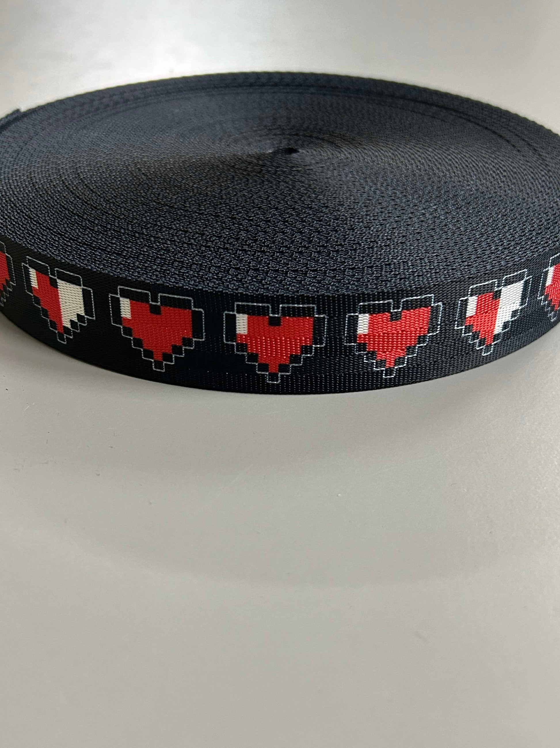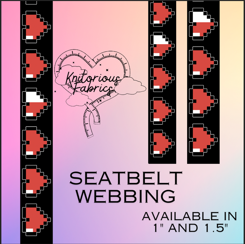 Printed 1” seatbelt webbing. Comes in 3, 5, and 10 yard cuts. All attempts will be made to have continuous cuts