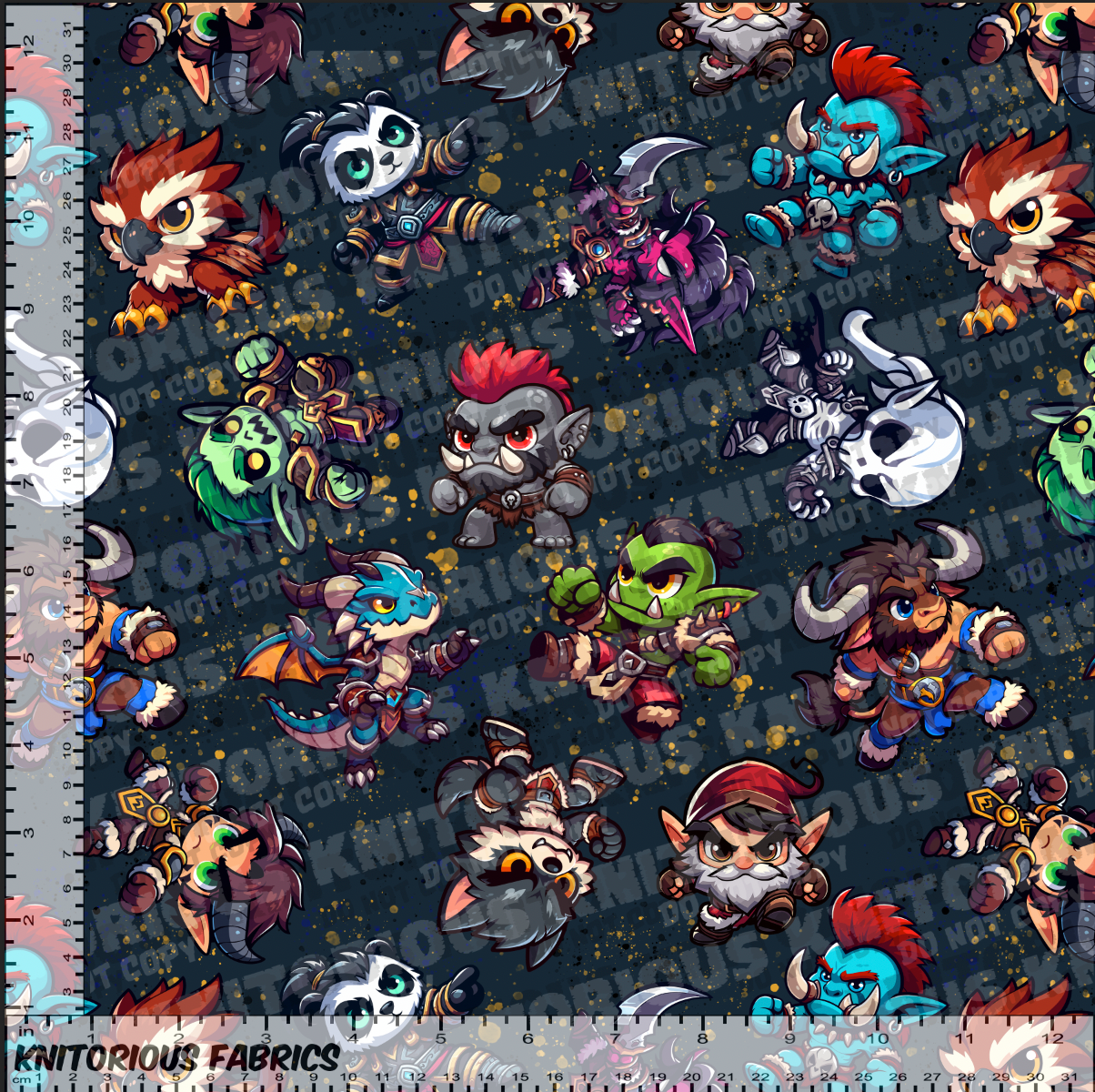 QTY of 1 = 1 yard or 1 panel For retail sometimes fabric might not be continuous. Could be 1,2,3,4, etc yard cuts. All sales are final for pre-orders once the round closes. No refunds will be given unless the round goes over the 16 week max turnaround time. It is your responsibility to check the FB wall or blog for round updates. Individual messages/emails and the like posted on the wall will not be answered continuously and you will only be referred to check yourself. Please follow washing instructions in 'terms' or in Facebook group doc under the files section or in the pinned post. Please also follow and special washing, drying, and use guidelines based on fabric types especially for delicate fabrics. Buyer negligence to not follow these instructions is not the seller's responsibility. Fabrics will be printed full width by fabric type, but please be aware imperfections are common along the sides of the selvage when doing small/custom orders and cutting off of selvage - this can result in a final width of 2-4" less useable fabric. Minor flaws such as a 1/2 inch - 2 inch difference or close to it in alignment during printing can also occur due to the nature of printing on stretch fabric, which can appear as a slight 'curve' to the printing of images on the fabric. Things such as a slight heathering/grainy look can occur on lighter colors (gray, light blue, etc). It is also possible to have a few tiny white specks here and there where lint comes off the fabric that had the ink on it. Minor flaws like this will not be discounted or refunded as this is the natural of digital printing. I do strive to bring only the very best quality though! Waterproof canvas has a very rough texture as stated in other areas, printing does not appear as 'crisp' and can also hinder some of the finer details and lines especially on dark background PLEASE NOTE: Different fabric types will vary in color slightly due to being printed on different contents. Do not expect your minky to perfectly match your cotton lycra, etc. Shades can vary in bulk with colors by 10% from what you see on the digital image/strike off also due to screen vs in hand. Discounts will only be given if it is greater than 10%. If it comes with a drastically different color, all members will be notified before it is shipped to them. If there are any flaws that are not considered minor, they will be disclosed before shipping to you. Please note I send any disclosures by email OR by a post on the Facebook group wall. If you do not reply within 72hrs your fabric will be shipped. Colors vary from batch to batch. Please also be aware when ordering no orders will be refunded or discounted if you have a single flaw on it that is smaller than/can be covered by a quarter per yard, this includes any type of flaw (including even a very small hole). If you cannot work around your flaw - do please pm me and I am more than happy to work something out with you. Satisfaction is always #1 to me! INSURANCE: USPS Priority/Flat Rate options include $100 insurance. UPS/Fedex/DHL options include $0 Insurance. It is the buyer's responsibility to choose route insurance at checkout. By purchasing through KNITorious you agree the seller is not responsible for any lost, damaged, or stolen packages. Once I ship items my commitment to get you the item has been fulfilled. Route is great, affordable, and handles claims with the buyer directly and fast! PHOTO OF COMPLETED CLOTHING ITEMS FOR EXAMPLE ONLY