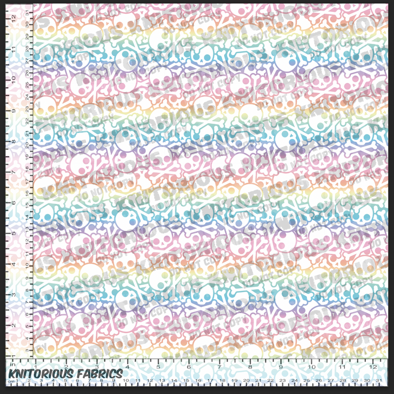 QTY of 1 = 1 yard PRE-ORDERS CAN TAKE 10-16 weeks to ship out. RETAIL CAN TAKE 14-16 BUSINESS days to ship out. For retail sometimes fabric might not be continuous. Could be 1,2,3,4, etc yard cuts. No refunds will be given until after those time frames for the length of time for delivery. It is your responsibility to check the wall and doc in the files section with updates in the Facebook group to see statuses of orders. Individual messages/emails and the like posted on the wall will not be answered continuously and you will only be referred to check yourself. To stay up to date on the status of your order please join the group for daily updates: https://www.facebook.com/groups/KNIToriousFabric/ It is recommended for best results your fabric be washed with synthrapol and color catchers. Follow washing instructions in 'terms' or in Facebook group doc under the files section or in the pinned post. Washing instructions will also be enclosed in your package on the back of the business card. Buyer negligence to not follow these instructions is not the seller's responsibility. Fabric will be printed on 58" wide fabric, but please be aware imperfections are common along the sides of the selvage when doing small/custom orders and cutting off of selvage - this can result in a final width of 54-58" useable fabric. Minor flaws such as a 1/2 inch - 2 inch difference or close to it in alignment during printing can also occur due to the nature of printing on stretch fabric, which can appear as a slight 'curve' to the printing of images on the fabric. Do not order if this will bother you. Things such as a slight heathering/grainy look can occur on lighter colors (gray, light blue, etc). Once again, do not order if this will bother you. It is also possible to have a few tiny white specks here and there where lint comes off the fabric that had the ink on it. Minor flaws like this will not be discounted or refunded. PLEASE NOTE: Different fabric types will vary in color slightly due to being printed on different fabrics. Do not expect your minky to perfectly match your cotton lycra, etc. Shades can vary in bulk with colors by 10% from what you see on the digital image/strike off. Discounts will only be given if it is greater than 10%. If it comes with a drastically different color, all members will be notified before it is shipped to them. If there are any flaws that are not considered minor, they will be disclosed before shipping to you. Please note I send any disclosures by email OR by a post on the Facebook group wall. If you do not reply within 72hrs your fabric will be shipped and I will not refund it once it is shipped, you will have to sell it in a destash or b/s/t. There is no gaurantee - and most likely different batches of fabric will match previous runs of the same print. Colors vary from batch to batch. Please also be aware when ordering no orders will be refunded or discounted if you have a single flaw on it that is smaller than/can be covered by a quarter per yard, this includes any type of flaw (including even a very small hole). If you cannot work around your flaw - do please pm me and I am more than happy to work something out with you. By ordering from this you acknowledge you have agreed to the rules in the FB group KNITorious Fabrics and still agree to them. These rules are also in the TOS you agree to upon checkout. All packages include $100 in insurance (unless international, which includes $200) through USPS.There is shipping insurance that can be purchased along with your order on this site which will cover it through USPS. If you did not ask for your total cost of your package to be insured then I will insure the rest through a 3rd party. By purchasing through KNITorious you agree the seller is not responsible for any lost, damaged, or stolen packages. If any of these occur it is the buyer's responsibility to follow the proper steps through USPS to file a claim. Anything over $100/$200 will also require a secondary insurance claim with a second party if USPS insurance was not paid for. PHOTO OF COMPLETED CLOTHING ITEMS FOR EXAMPLE ONLY