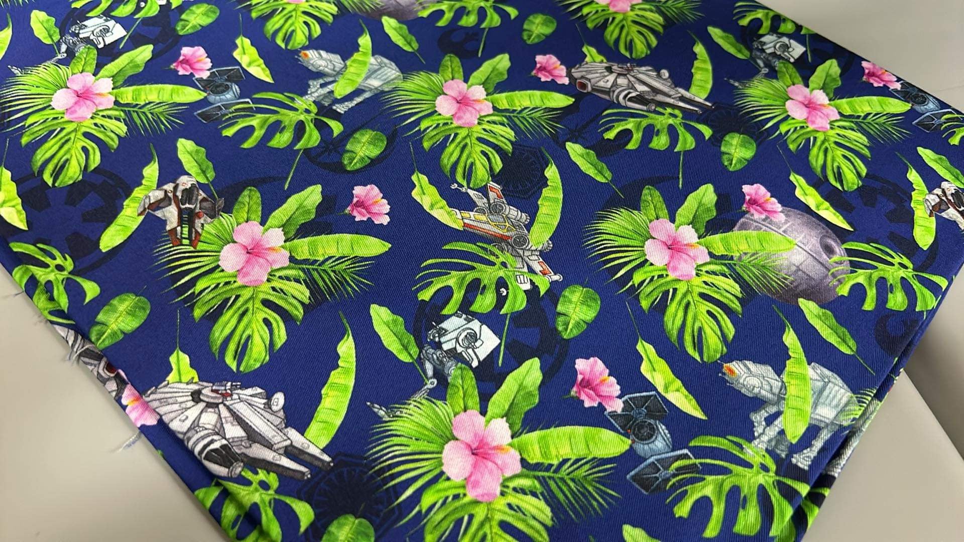 *RETAIL* Tropical Wars Pink Flowers - Blue (Half Size)